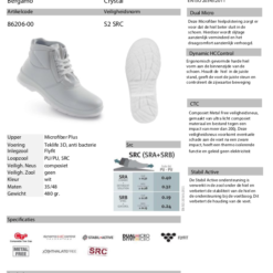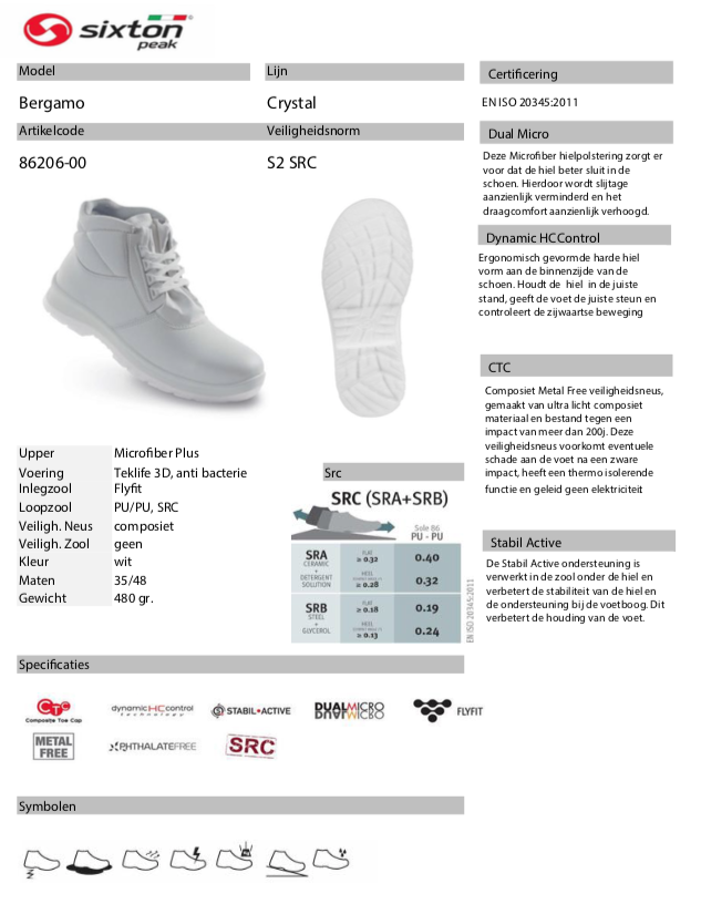 | Eigenschap | SB: safety basis, E: energie absorberende hak, A: antistatisch, WPA: waterafstotend, FO: brandstof/olie bestendig, SR: antislip zool |