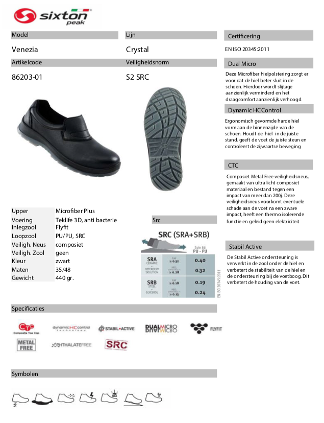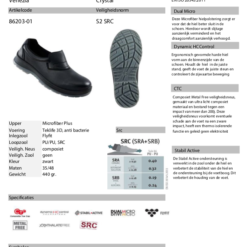 | Eigenschap | SB: safety basis, E: energie absorberende hak, A: antistatisch, WPA: waterafstotend, FO: brandstof/olie bestendig, SR: antislip zool |