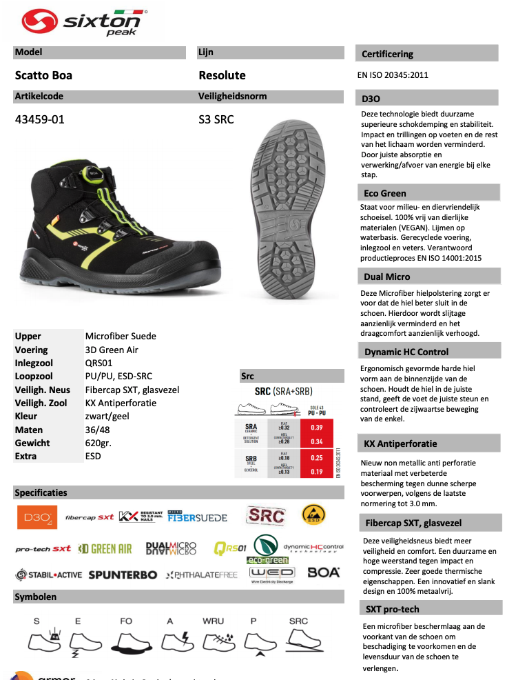 Sixton Scatto BOA S3 Werkschoen Hoog 43459-01