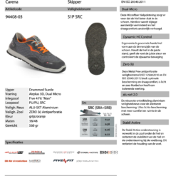 De Sixton Peak Carena werkschoenen uit de Skipper-lijn hebben een S1P veiligheidsnormering.